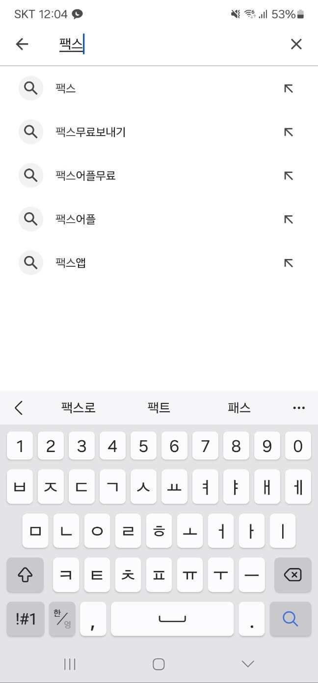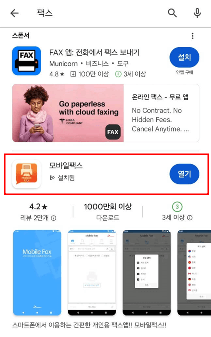 위의 링크에서 모바일팩스 어플을 바로 다운로드할 수도 있고, 아래와 같이 직접 검색하여 다운로드도 가능합니다.