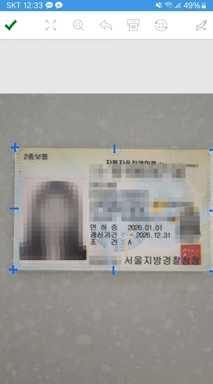 이미 사진을 찍어놓은 신분증을 발송할 때는 해당 사진을 불러오면 신분증 크기에 맞춰서 사진 편집이 가능합니다.