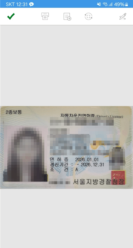 신분증을 바로 찍을 경우에는, 흰색 A4와 같이 뒷 배경이 하얀 색으로 된 깔끔한 곳에 놓고 신분증을 촬영하는 것이 좋습니다.