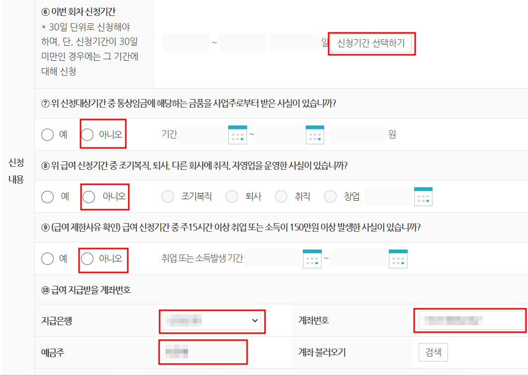 ☞ 단, 천재지변, 본인이나 배우자 또는 직계존속, 비속의 질병 혹은 부상, 병역법에 의한 의무복무, 범죄혐의로 인한 구속 또는 형의 집행으로 급여를 신청할 수 없었던 사람은 그 사유가 끝난 후 30일 이내에 신청해야 합니다.