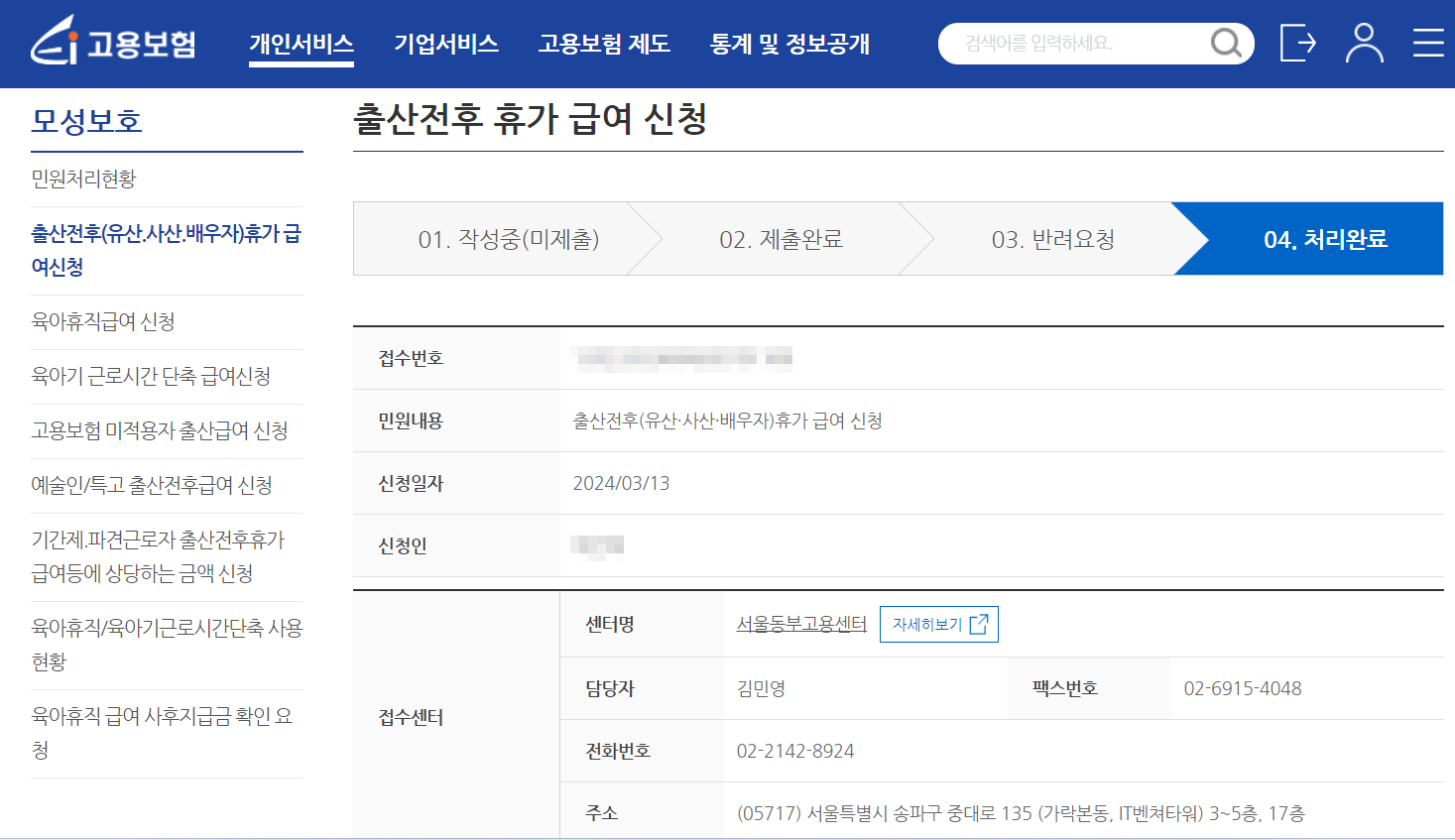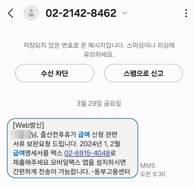 2021년의 경우, 저는 사업장 즉, 회사에서 자료 입력을 다 하면 급여 신청만 따로 한 뒤 출산휴가 급여를 받을 수 있었습니다. 그러나 2024년에는 신청인인 저에게 직접 담당자가 최근 3개월치의 급여를 확인할 수 있는 급여명세서를 팩스로 보내달라고 요청했습니다.