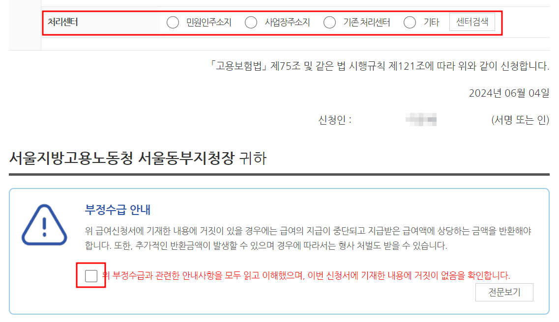 ☞ 센터방문/우편: 확인서 및 급여신청서를 고용센터에 접수합니다.