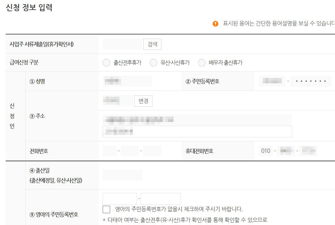 ▶ 출산 전후 휴가를 시작한 날 이후 1개월부터 휴가가 끝난 날 이후 12개월 이내 신청해야 합니다.