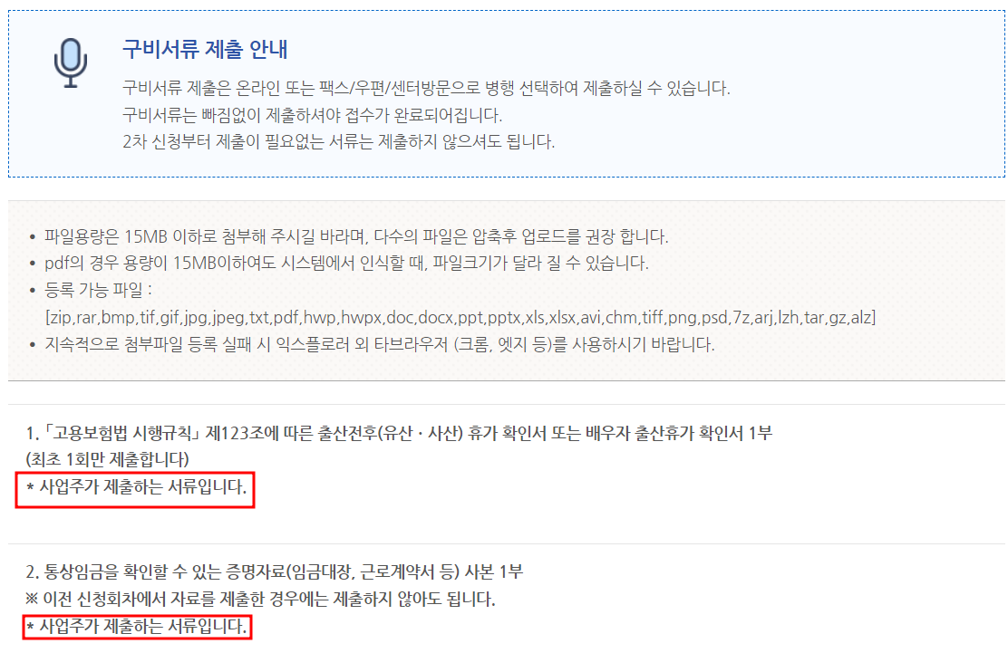 ▶ 출산전후휴가 급여 신청 시 구비서류